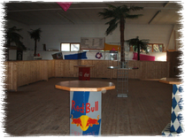 mit Theken, Stehtischen, Palmen, Zelt, sämtlichem Equipment, ...