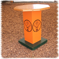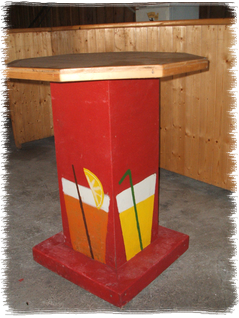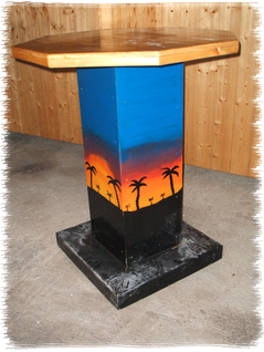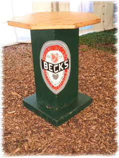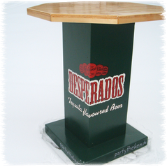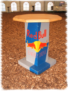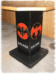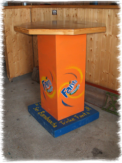 Seit 2005 im Sortiment: 13 stabile Designer-Stehtische mit "Getränkemarken-Lackierung"- massiv gebaut- dekorativ bemalt- für jeden Anlass passend